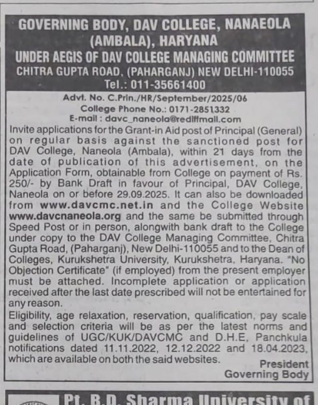 DAV College, Naneola (Ambala) was established in 1974 by DAV College Managing Committee, Chitra Gupta Road, New Delhi. The College is situated at the border of Haryana Punjab. Since its inception, it has been catering to the educational needs of students of rural areas who cannot afford to go to cities.